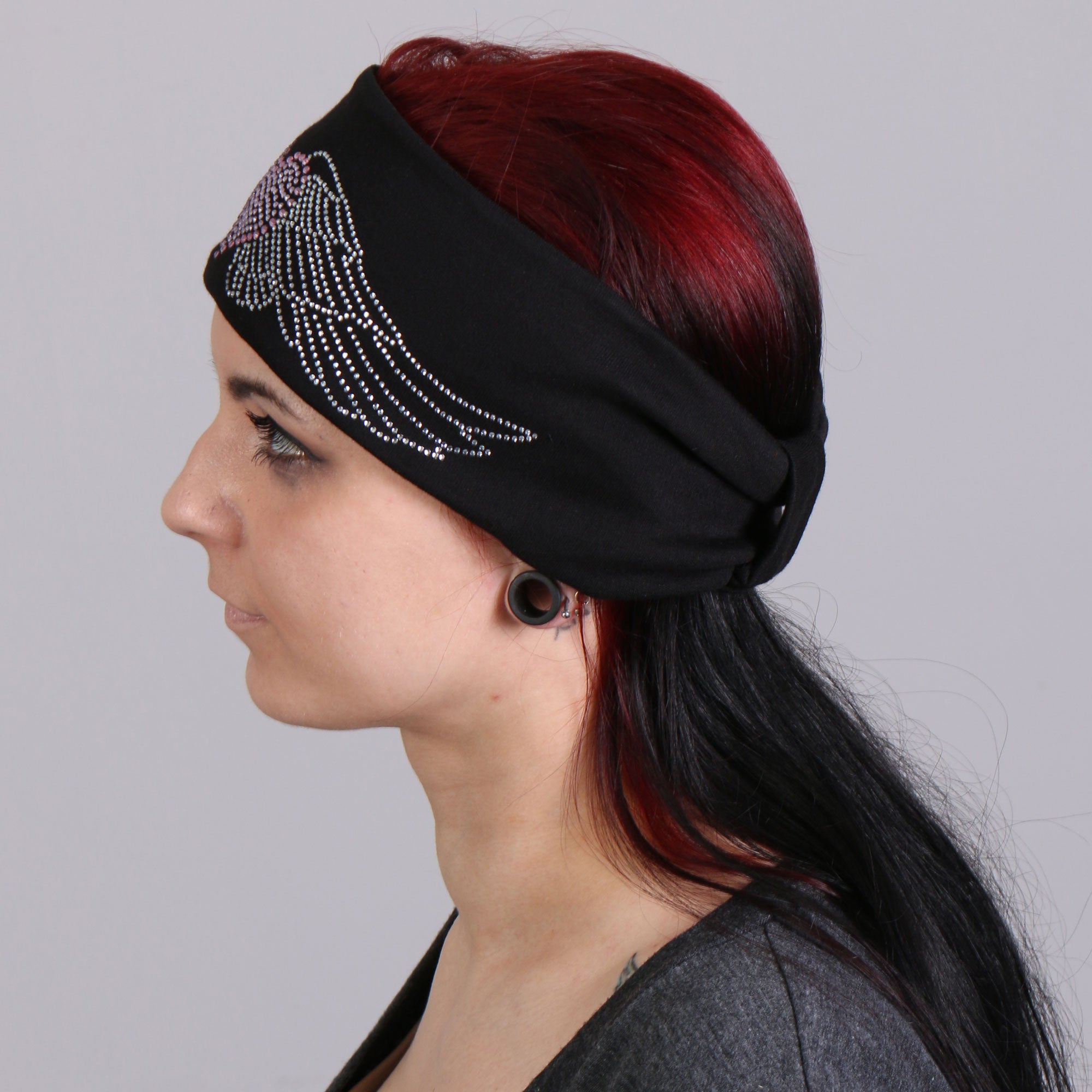 High quality cotton/poly stretchy road wrap with rhinestone design.