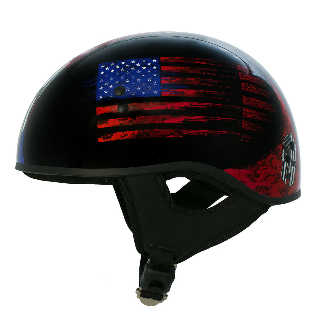 - Glossy Black Finish with Colored Skull Warrior and USA Flag Artwork