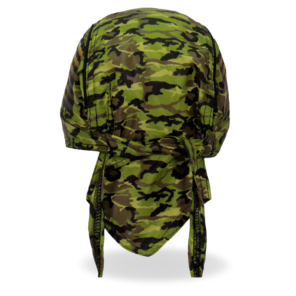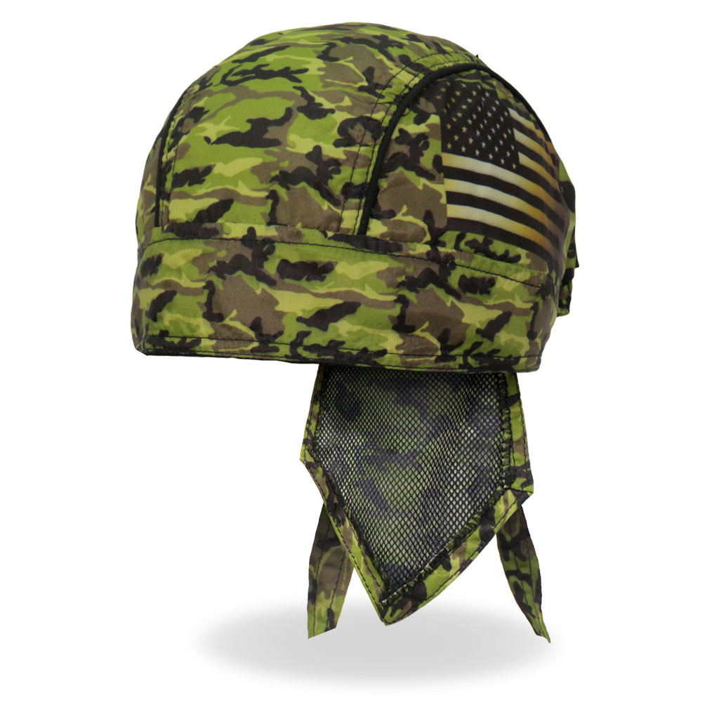 Whether you're hitting the road for a joyride on your motorcycle, getting together with your club, or just need some UV protection and sweat control, Hot Leathers premium doo rag head wraps are just what you need! Put on your new headwrap bandana while you run errands or handle some yard work. Represent your unique style with our moisture wicking, mesh lined head wraps, showcasing bright, long lasting designs sure to turn heads! This head wrap features our original camo American flag design.