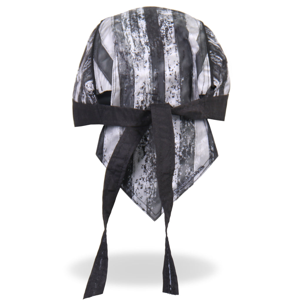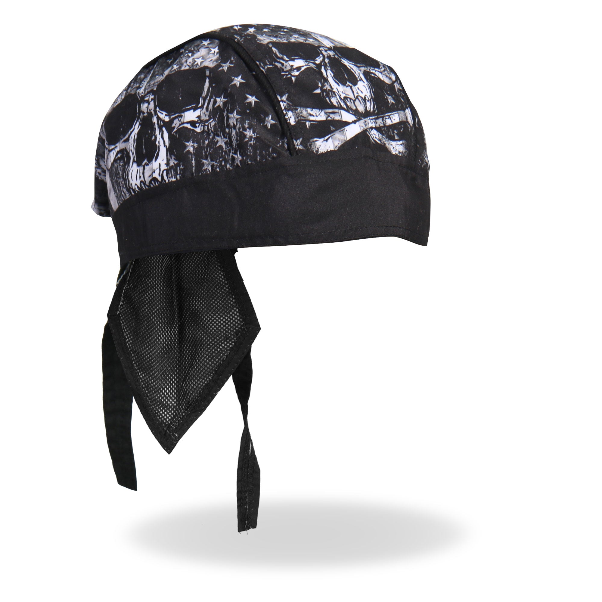 Whether you're hitting the road for a joyride on your motorcycle, getting together with your club, or just need some UV protection and sweat control, Hot Leathers premium doo rag head wraps are just what you need! Put on your new headwrap bandana while you run errands or handle some yard work. Represent your unique style with our moisture wicking, mesh lined head wraps, showcasing bright, long lasting designs sure to turn heads! This head wrap features our original skull stars and stripes design.