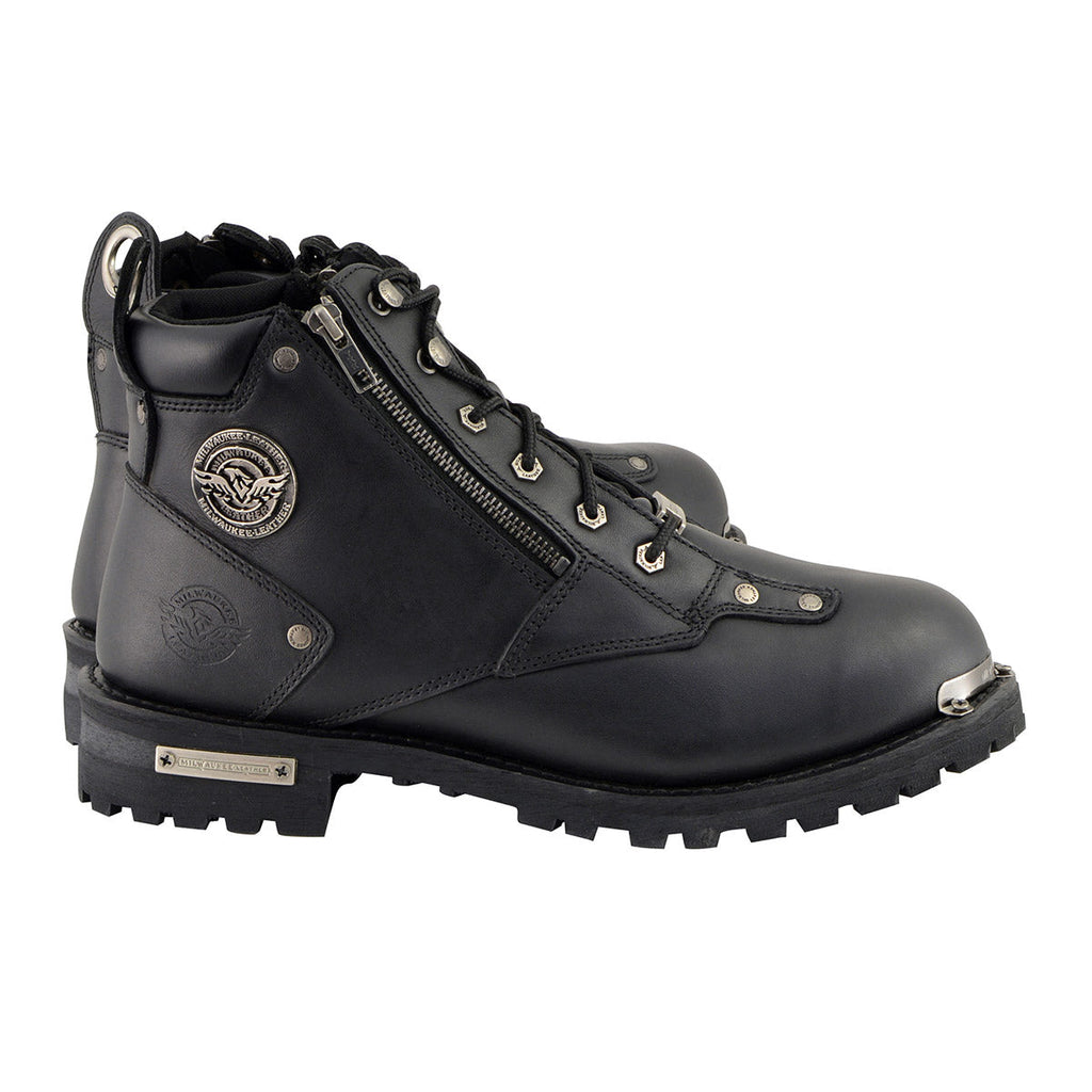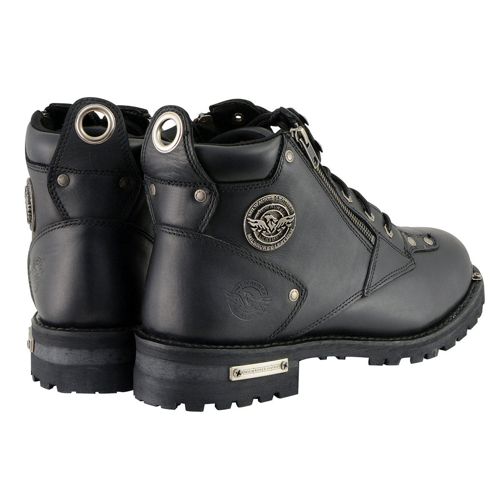 Milwaukee Leather MBM103 Mens Lace-Up Boots with Double Sided Zipper Entry - Milwaukee Leather Mens Boots