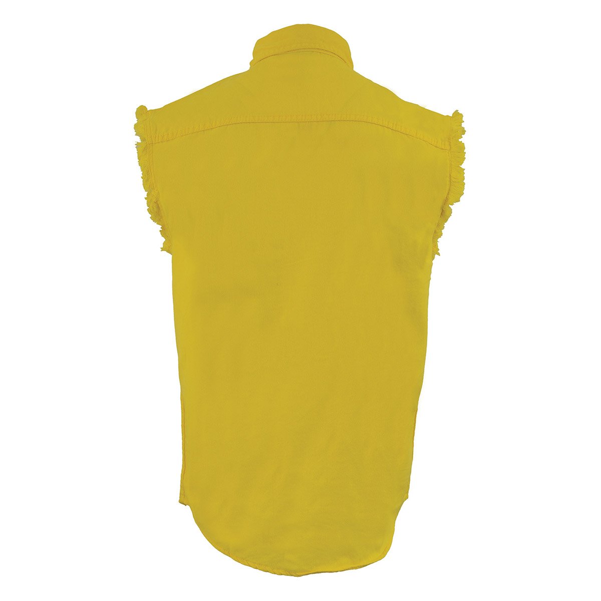 Milwaukee Leather DM4008 Men's Yellow Lightweight Denim Shirt with with Frayed Cut Off Sleeveless Look