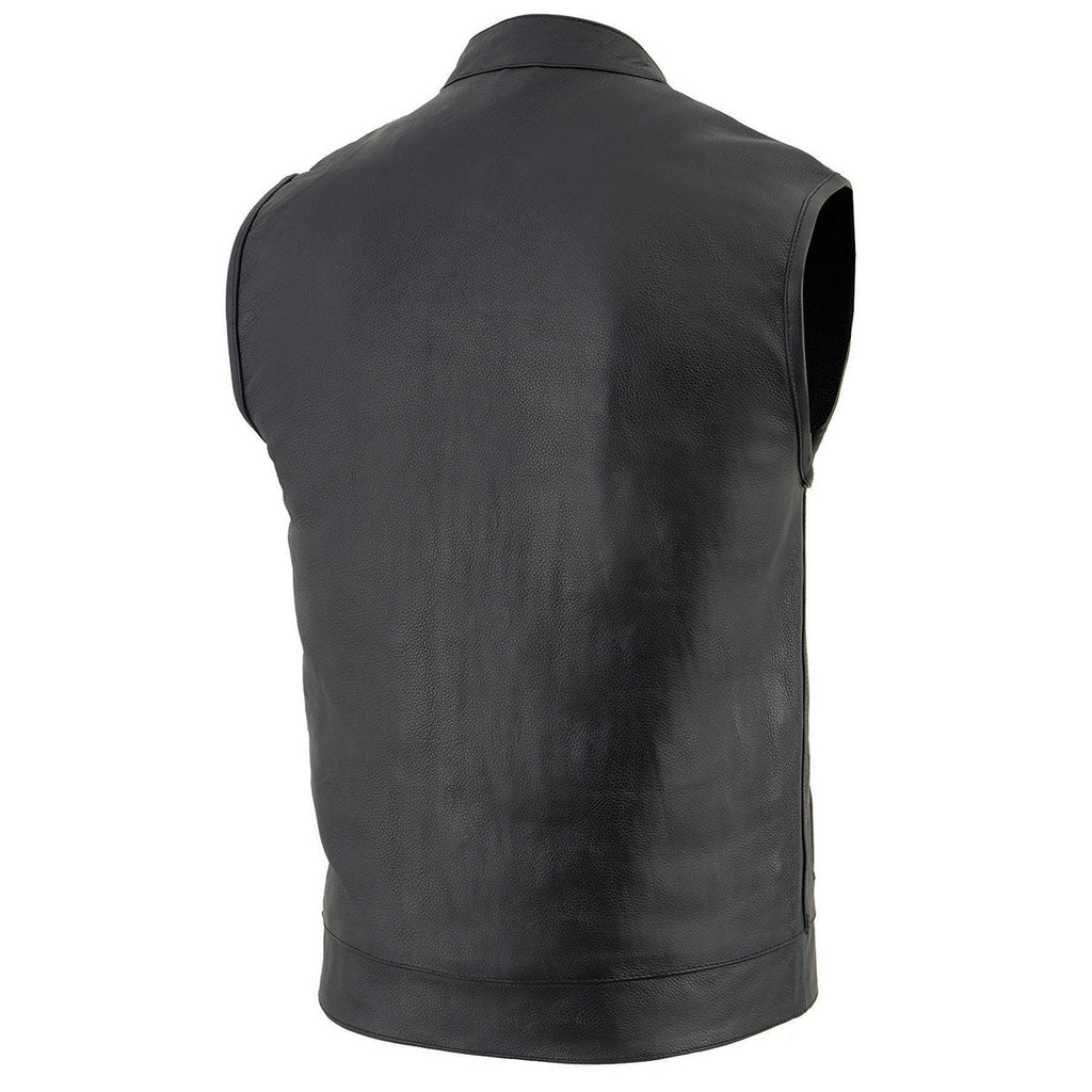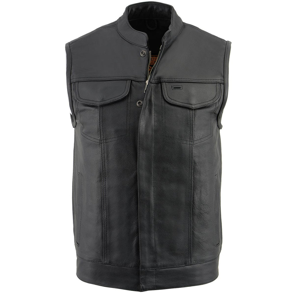 Milwaukee Leather LKM3710 Men's Black Club Style Motorcycle Biker Leather Vest with Open Neck