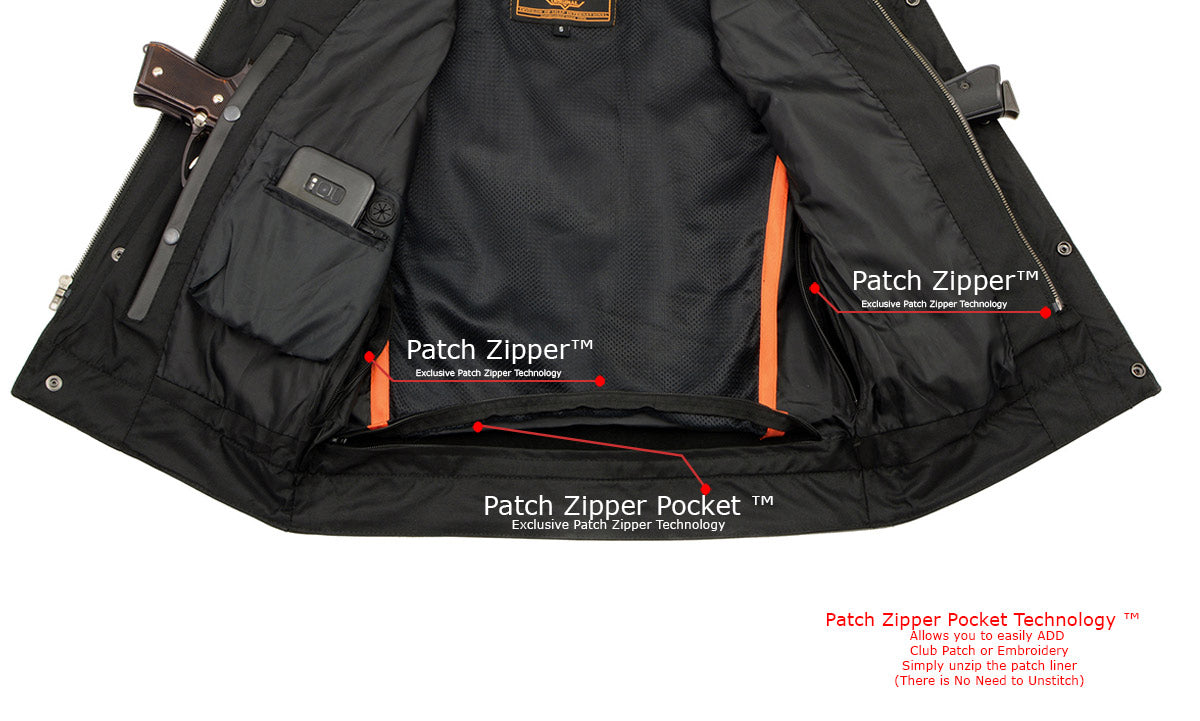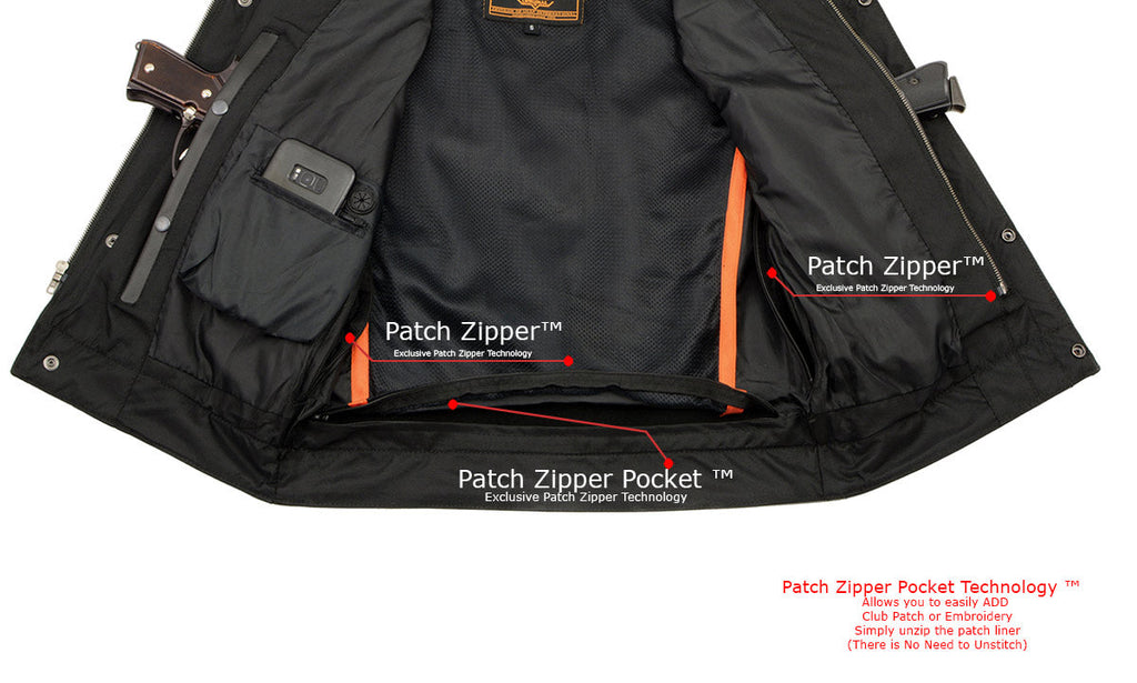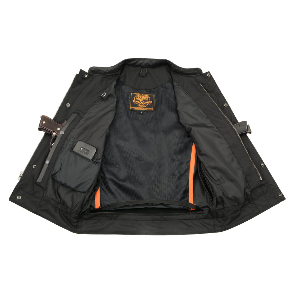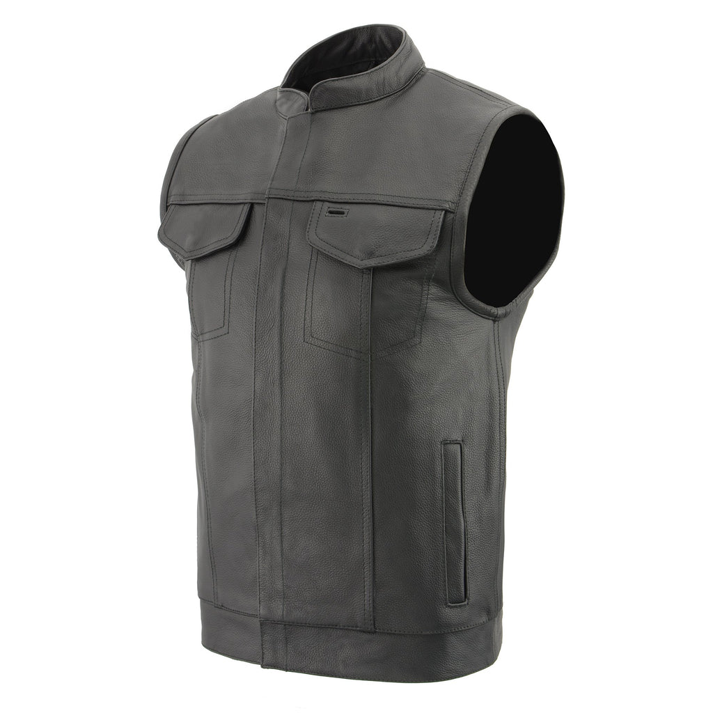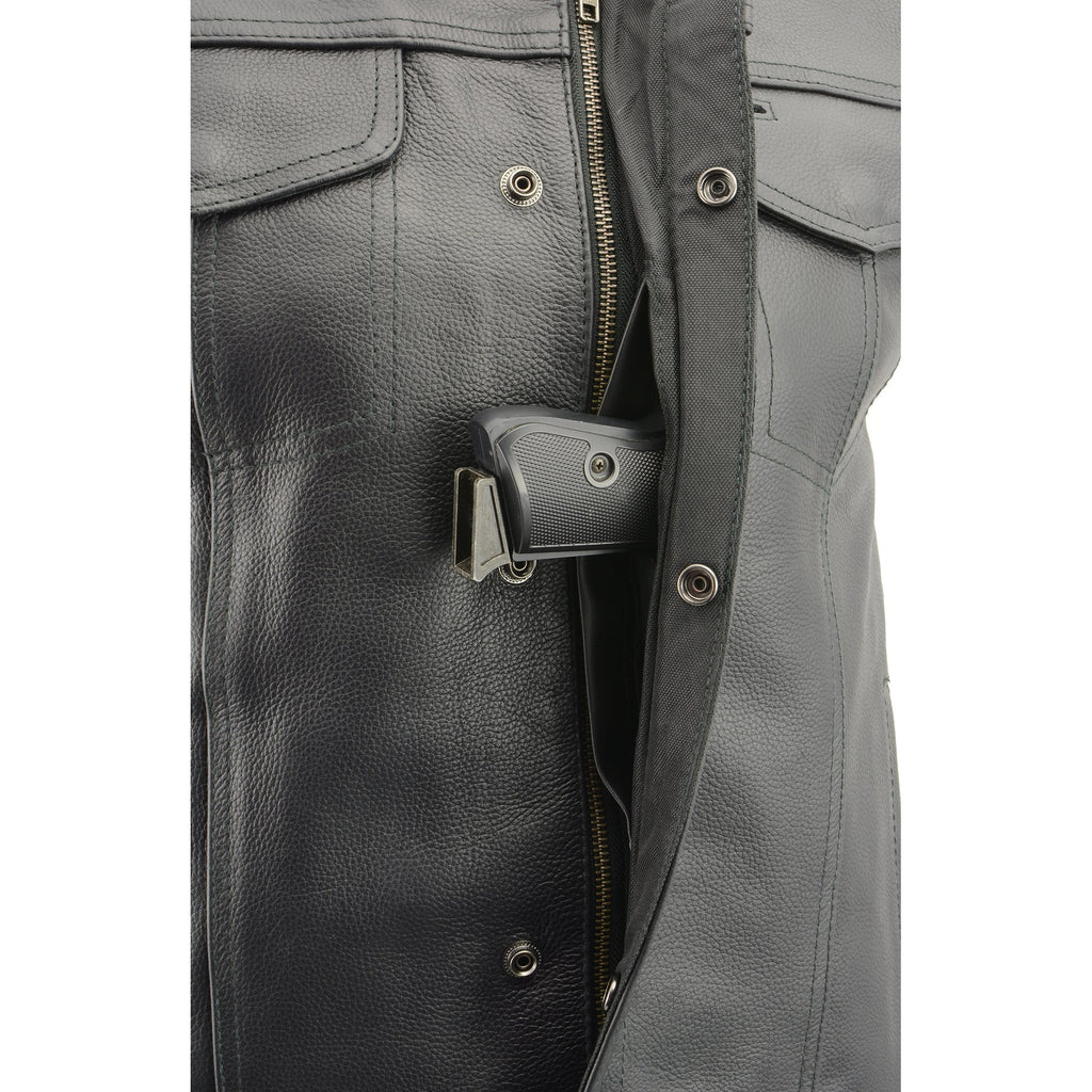 Milwaukee Leather LKM3713 Men's Leather Open Neck Snap and  Zip Front Club Style Vest with External Gun Pocket - Milwaukee Leather Mens Leather Vests