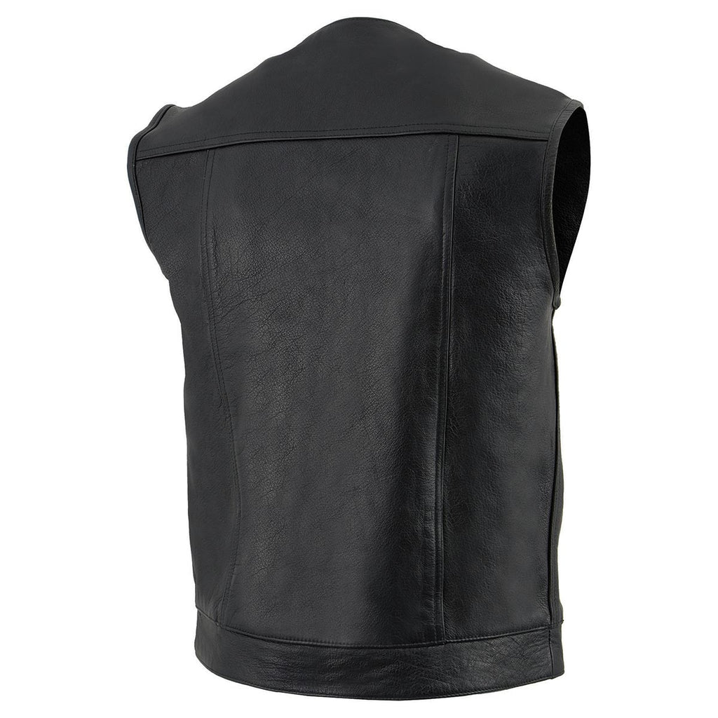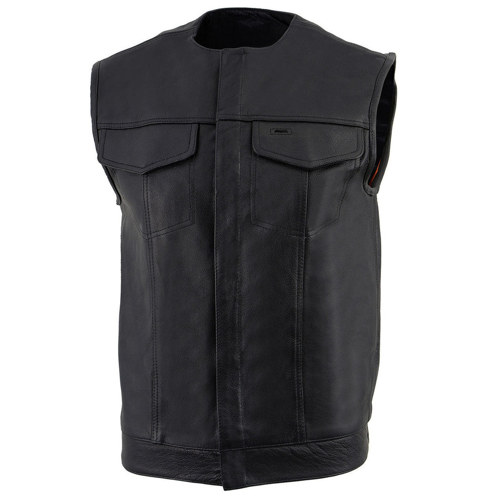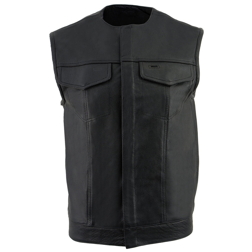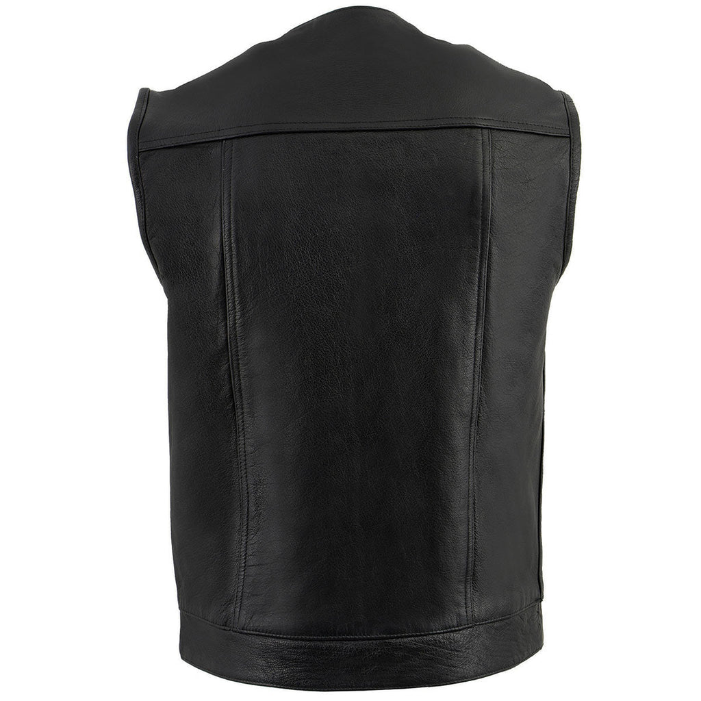 Milwaukee Leather LKM3721 Men's Black Leather Collarless Concealed Snap Closure Club Style Motorcycle Vest