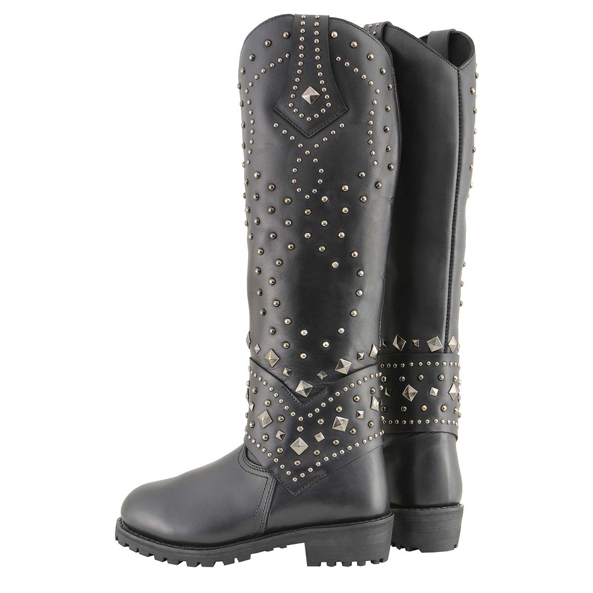 Milwaukee Leather MBL9371 Women's Black Extra-Tall Studded and Riveted Western Style Boots