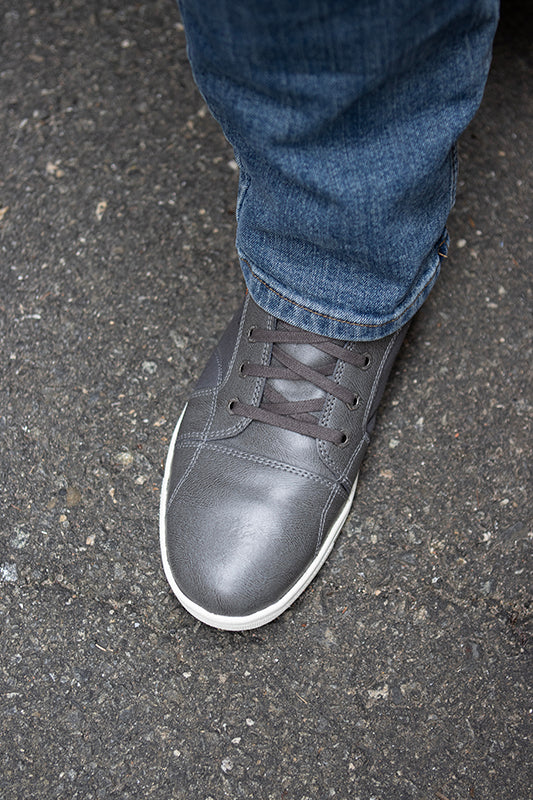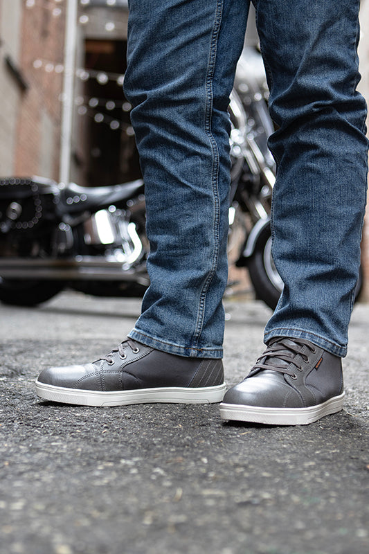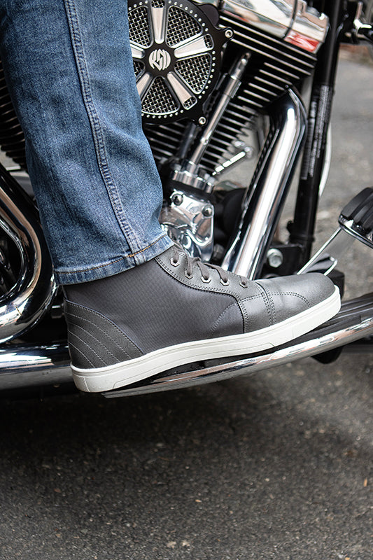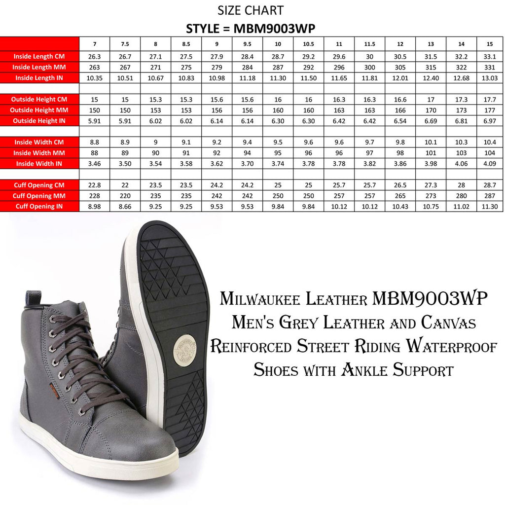 Milwaukee Leather MBM9003WP Men's Grey Leather and Canvas Reinforced Street Riding Waterproof Shoes with Ankle Support