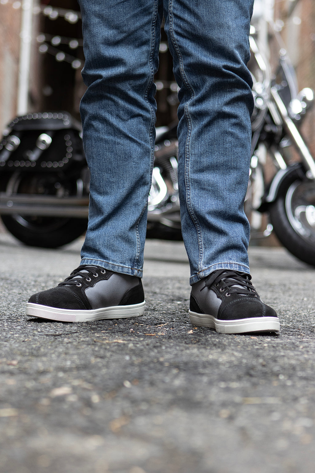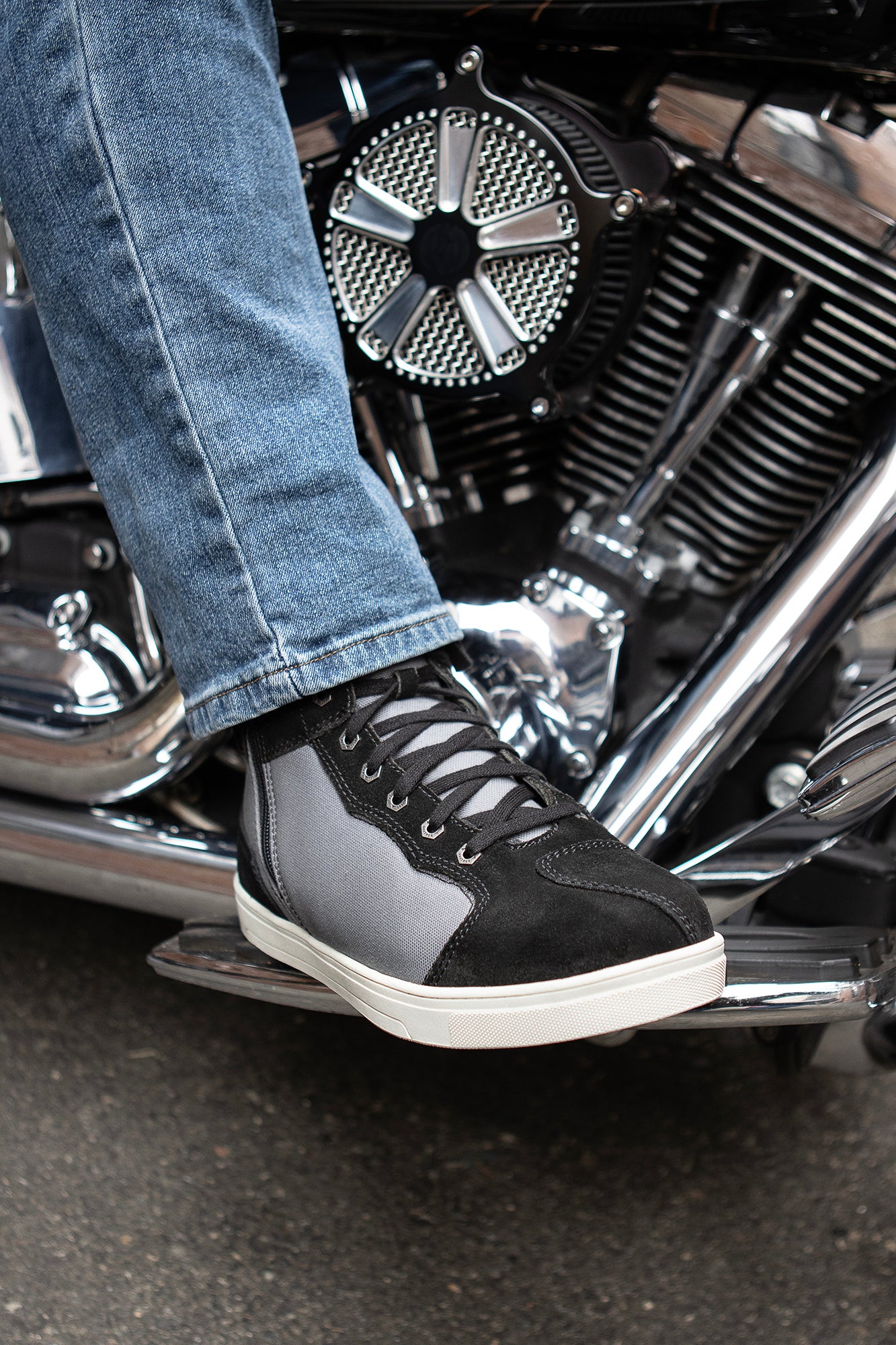 Milwaukee Leather MBM9116 Men's Black Suede and Grey Canvas Street Riding Shoes with Dual Closure and Ankle Support with Ankle Support