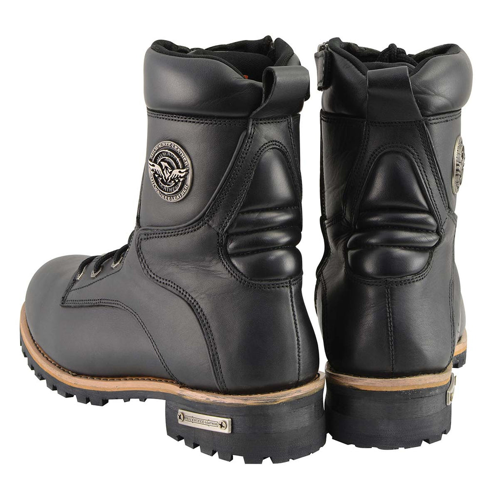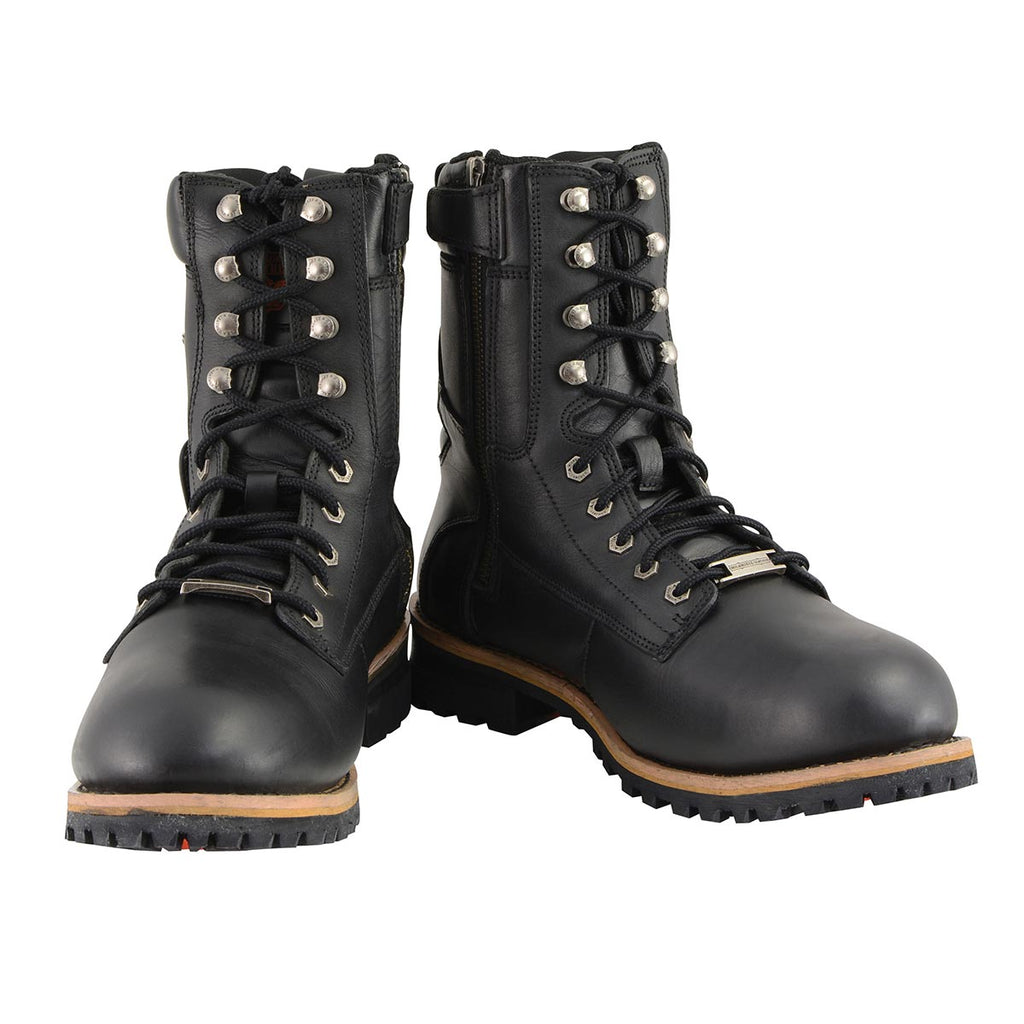 Milwaukee Leather MBM9095 Mens Black Lace-Up Classic Logger Boots with Side Zipper - Milwaukee Leather Mens Boots