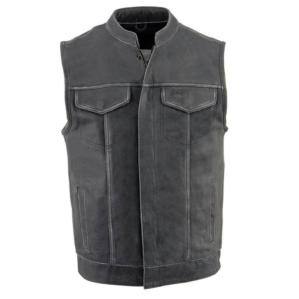 Milwaukee Leather MLM3513 Men's Distressed Grey Dual Closure Open Neck Club Style Motorcycle Leather Vest