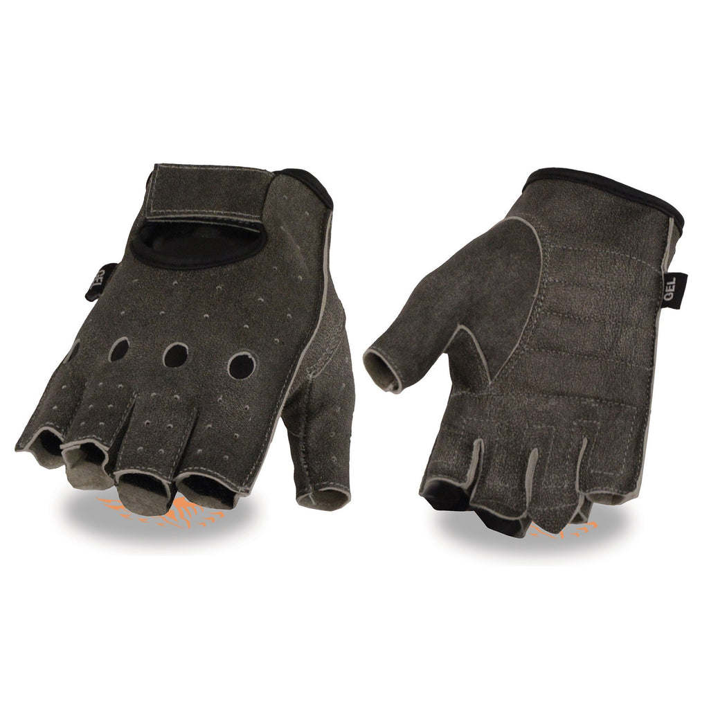 Milwaukee Leather MG7557 Men’s Distressed Gray Leather Fingerless Gloves with Gel Padded Palm
