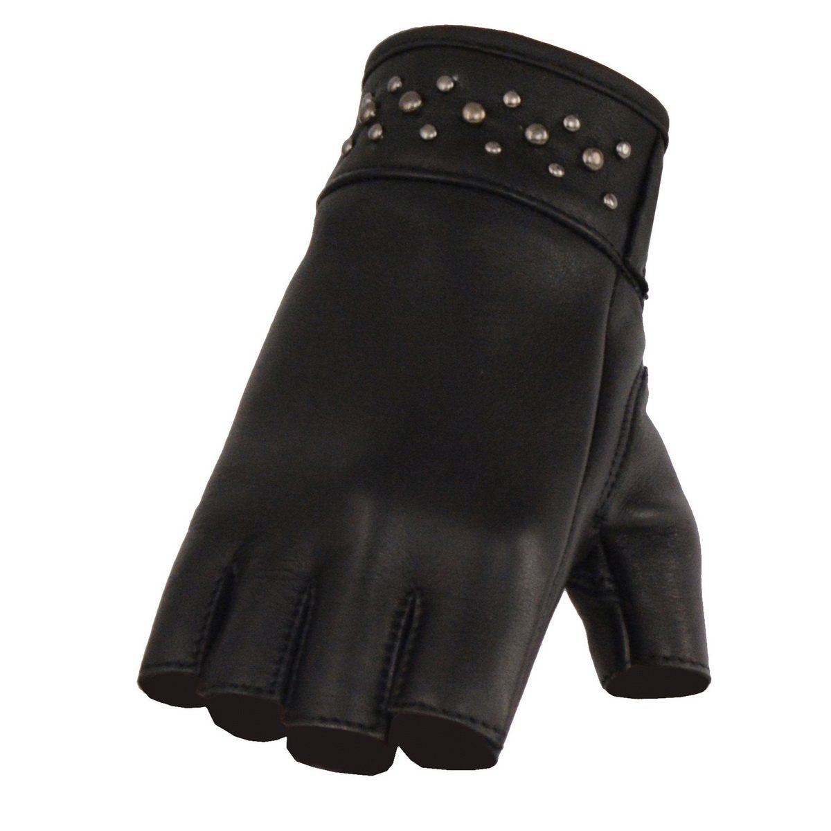 Milwaukee Leather MG7761 Women's Fingerless Black Leather Gloves with Gel Palms