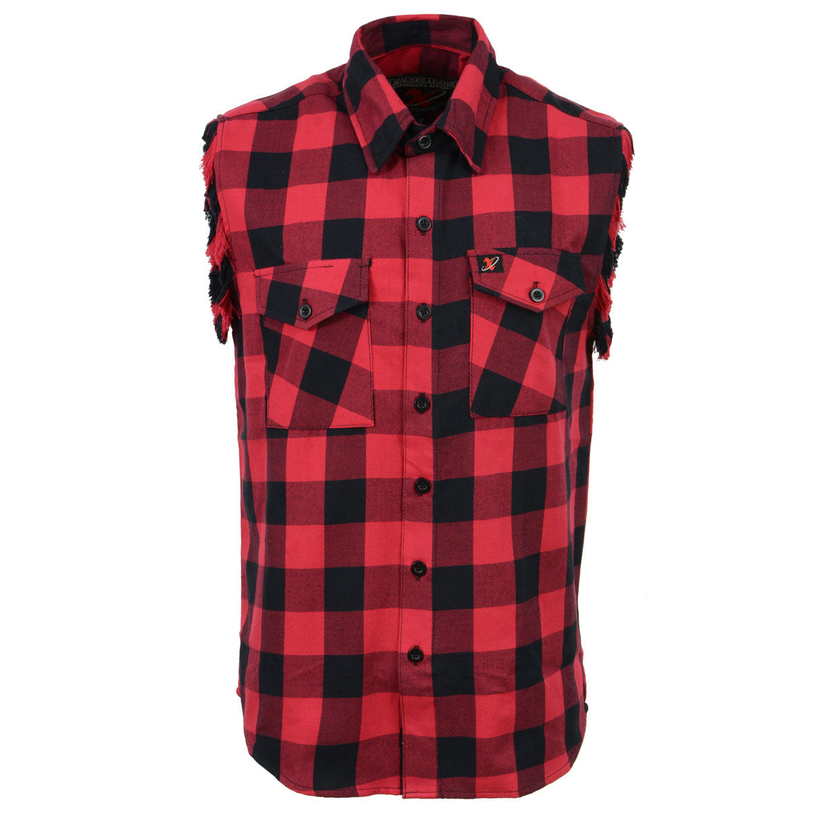Milwaukee Leather MNG11692 Men’s Classic Black and Red Button-Down Flannel Cut Off Frayed Sleeveless Casual Shirt