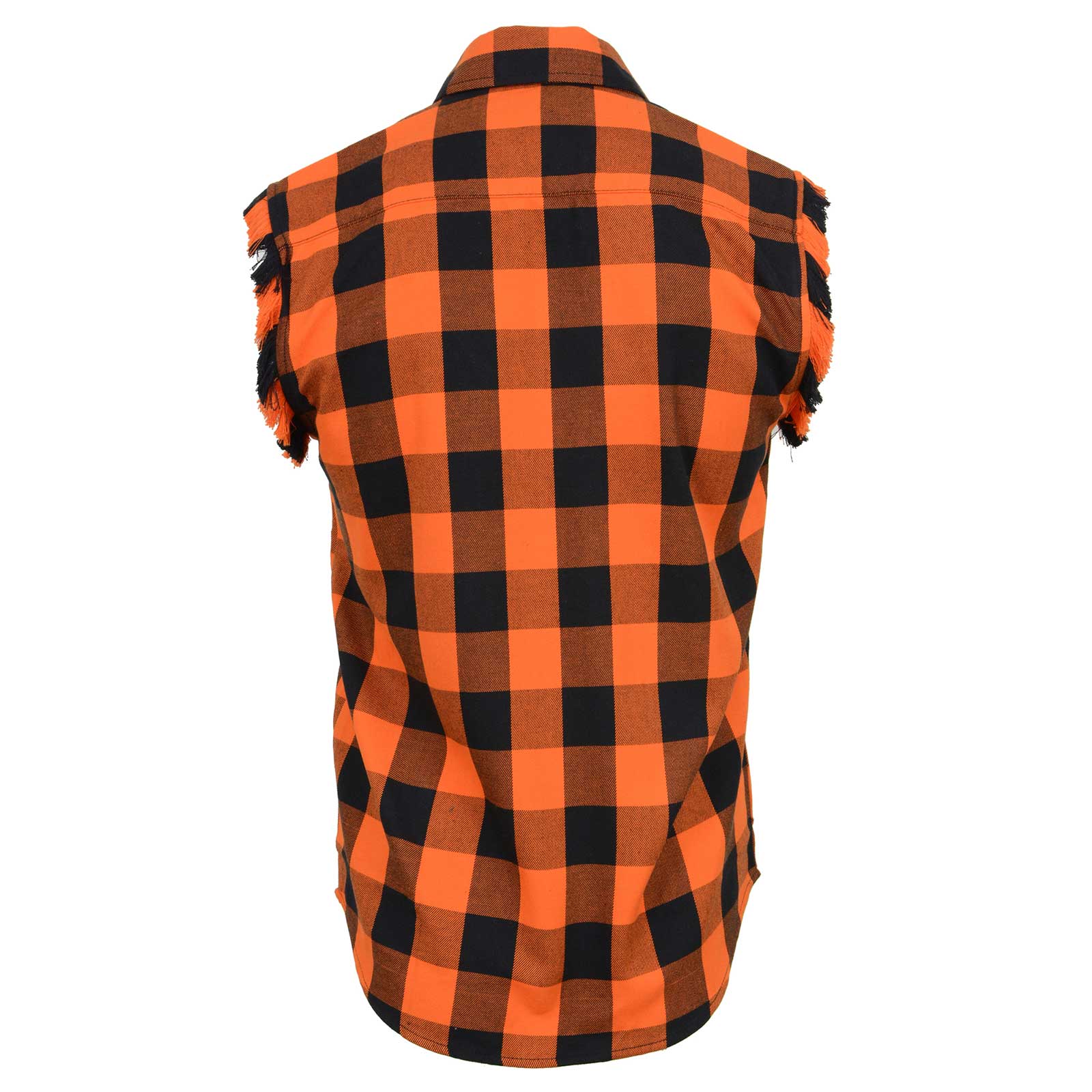 Milwaukee Leather MNG11698 Men’s Classic Black and Orange Button-Down Flannel Cut Off Frayed Sleeveless Casual Shirt