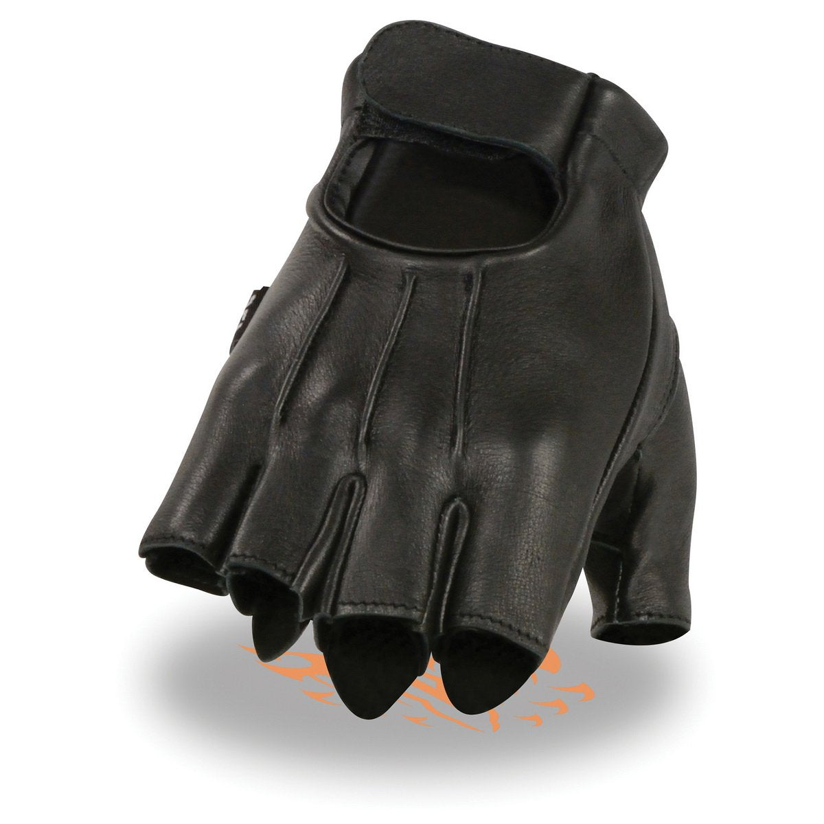Milwaukee Leather SH878 Men's Black Welted Deerskin Fingerless Gloves with Gel Padded Palms Cuts Down the Vibrations and Adds Comfort
