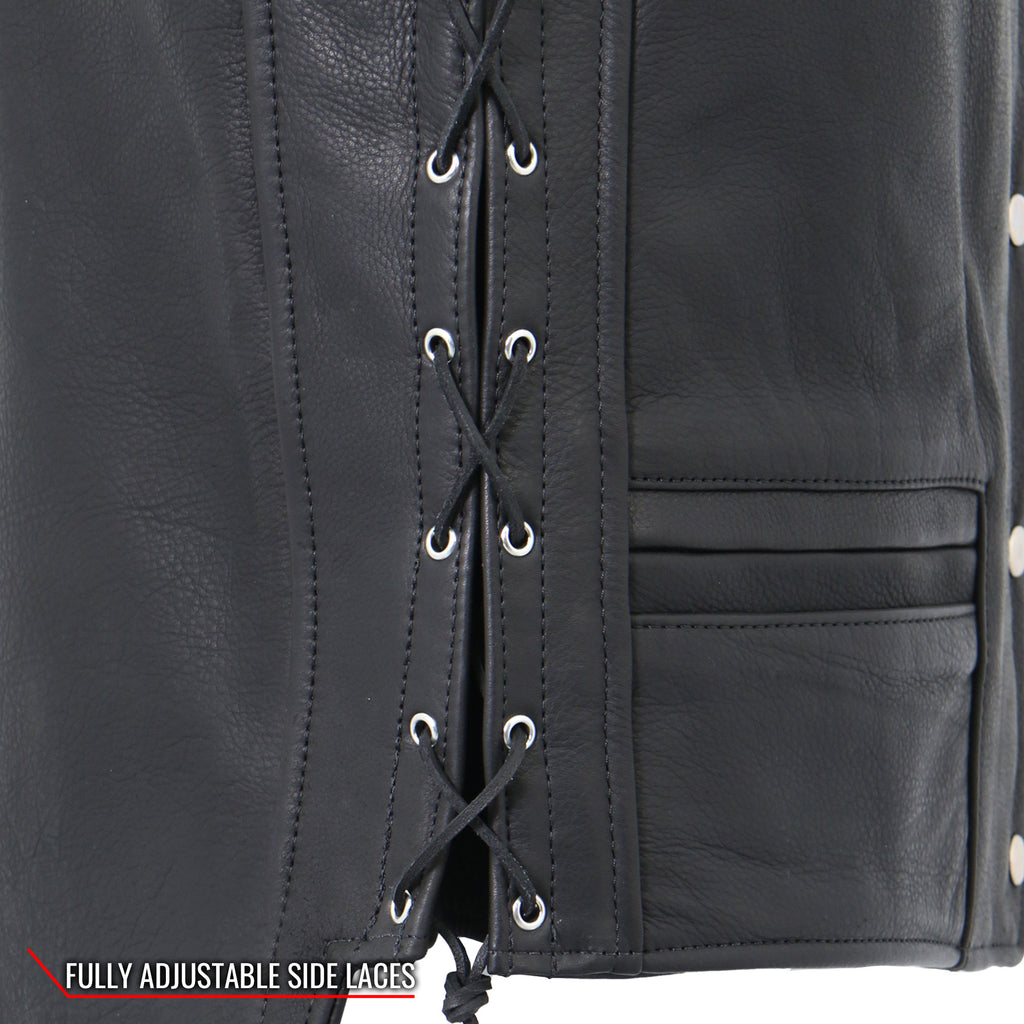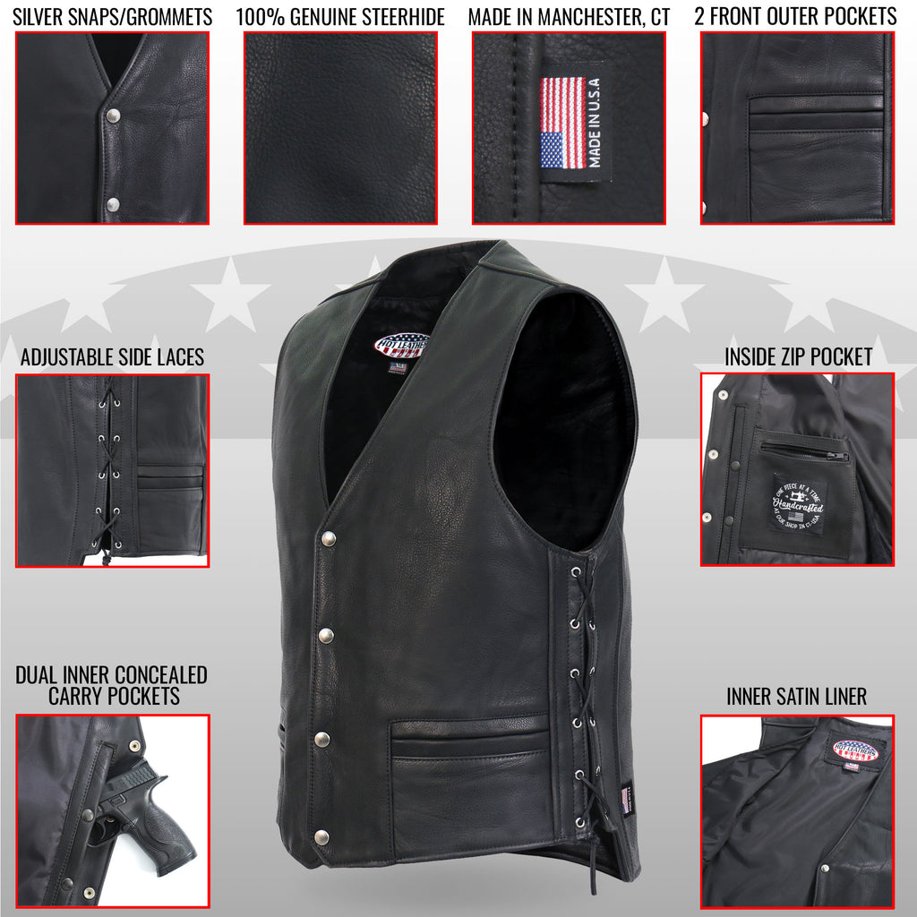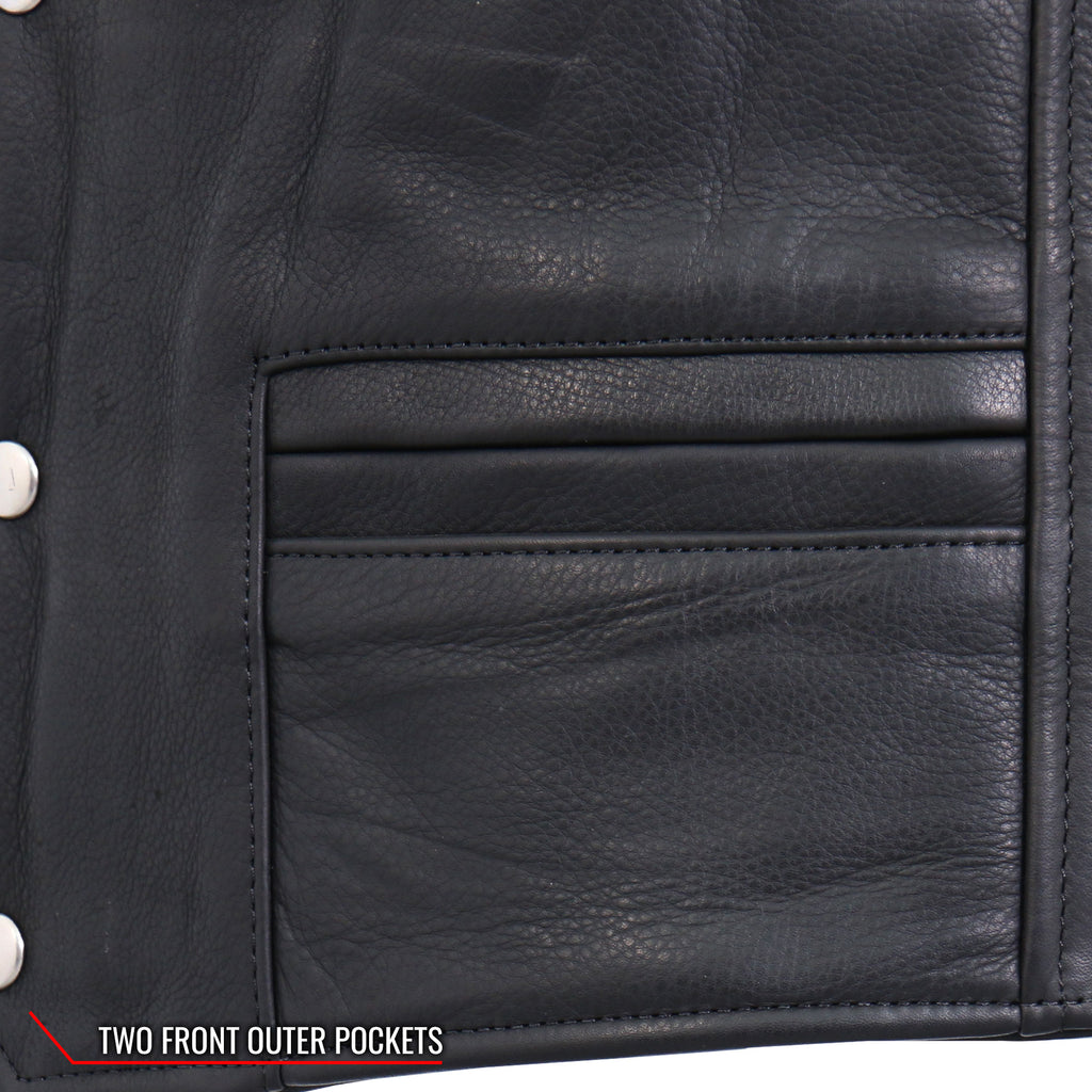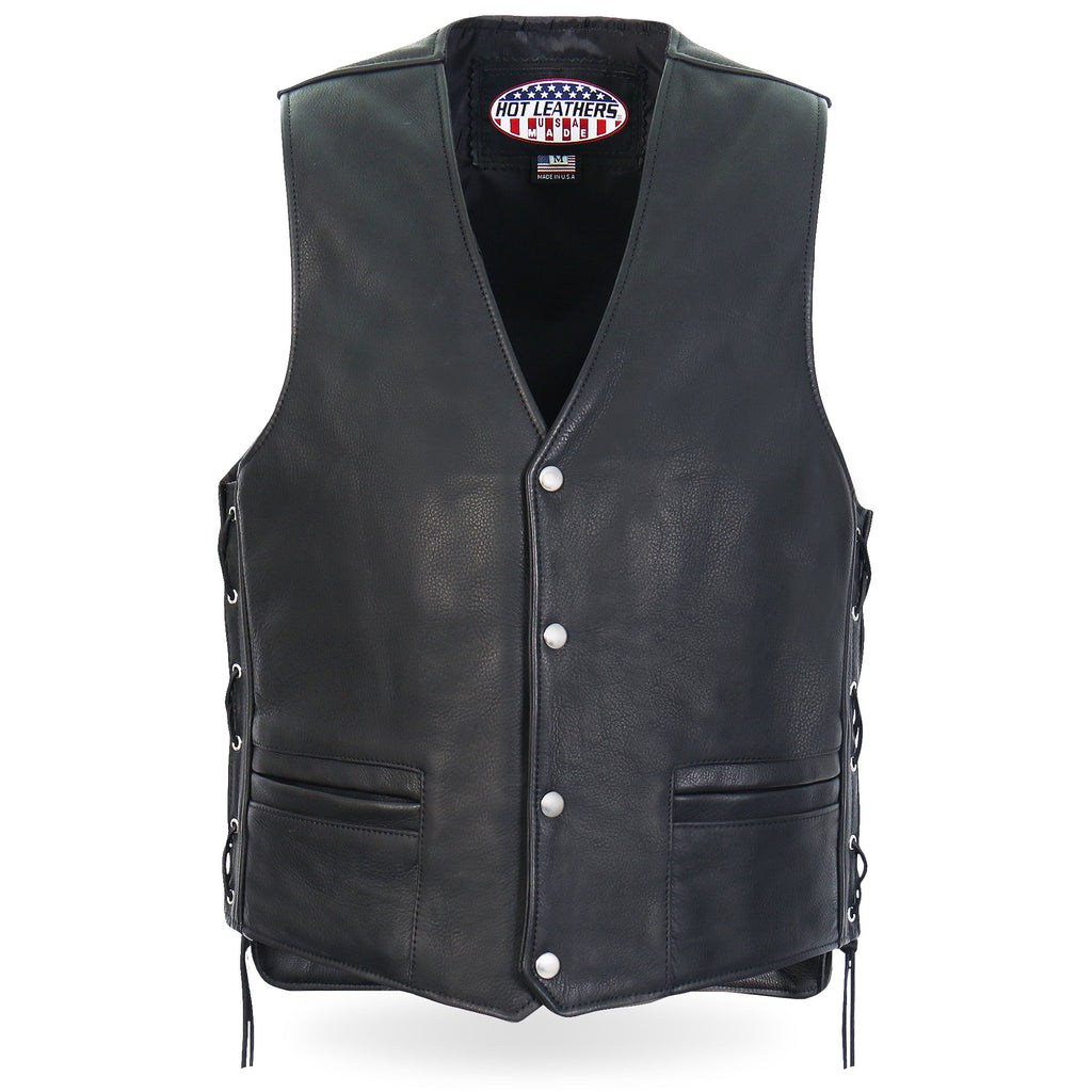 Hot Leathers VSM5003 Men's USA Made Extra Long Back Premium Steerhide motorcycle biker Leather Vest