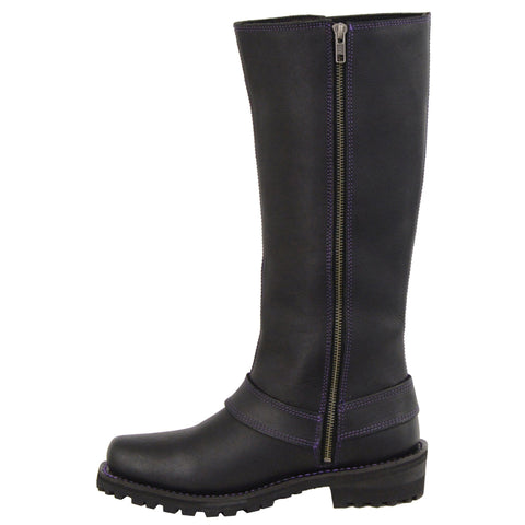 Milwaukee Leather MBL9366 Ladies Black 14 Inch Leather Harness Boots with Purple Accent Lacing - Milwaukee Leather Womens Boots