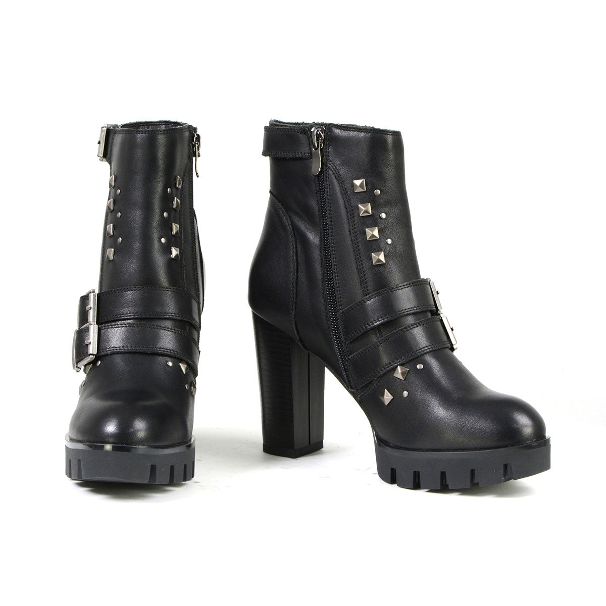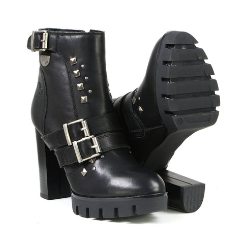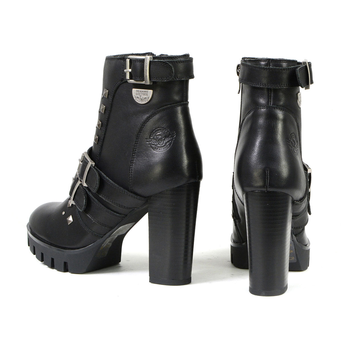 Milwaukee Leather MBL9456 Women's Premium Black Leather Fashion Platform Boots with Straps