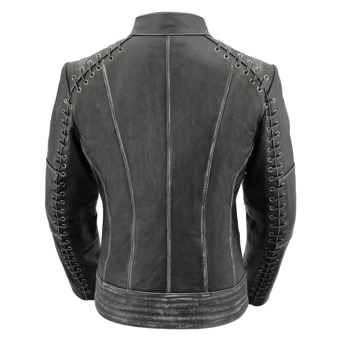 Milwaukee Leather MLL2526 Women's 'Elegant' Distressed Gray Detail Laced Leather Jacket