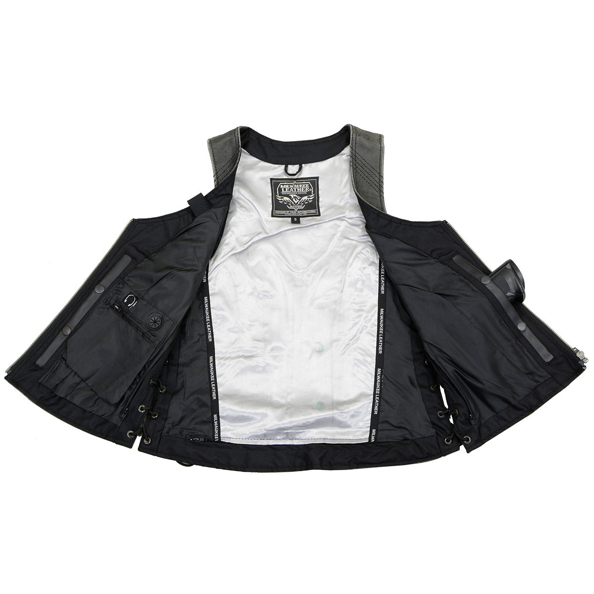 Milwaukee Leather MLL4531 Women's Distressed Grey ‘Open Neck’ Leather Vest with Side Laces