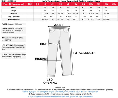 Milwaukee Leather MLM5518 Men's 'The Ryder' Vintage Crazy Horse Brown Slash Pockets Leather Chaps