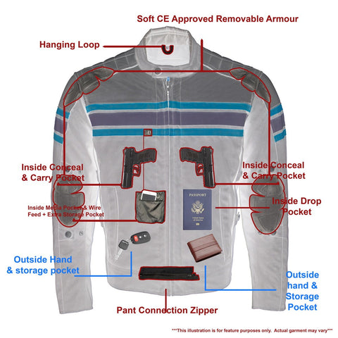 • Ventilation System: Under Arms Vents on Each Side with Zipper Opening and Closure
