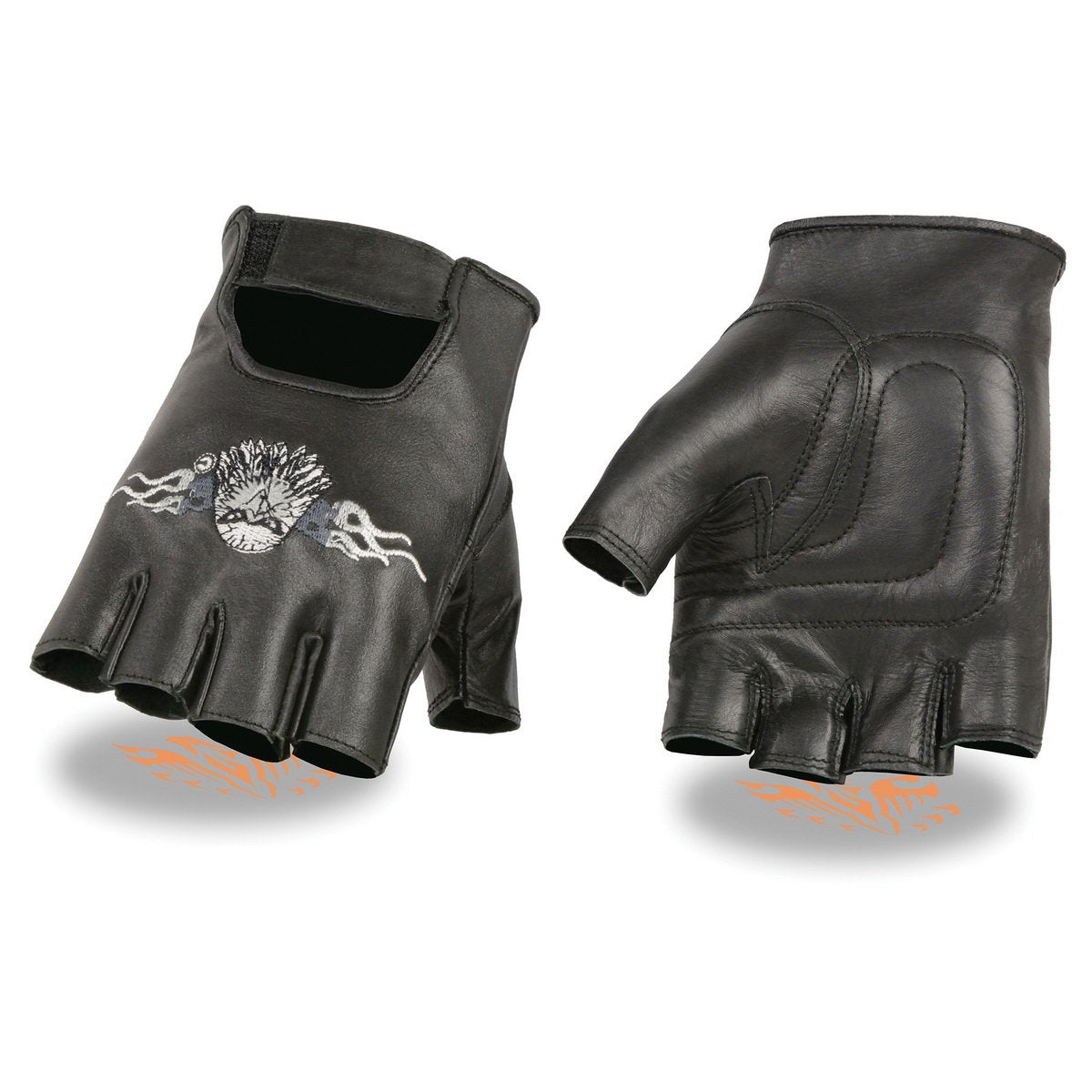 Milwaukee Leather SH352 Men's 'Eagle Head' Black Leather Fingerless Gloves
