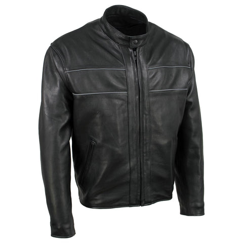 Milwaukee Leather USA MADE MLJKM5003 Men's Black 'Echo' Premium Leather Motorcycle Jacket with Reflective Piping