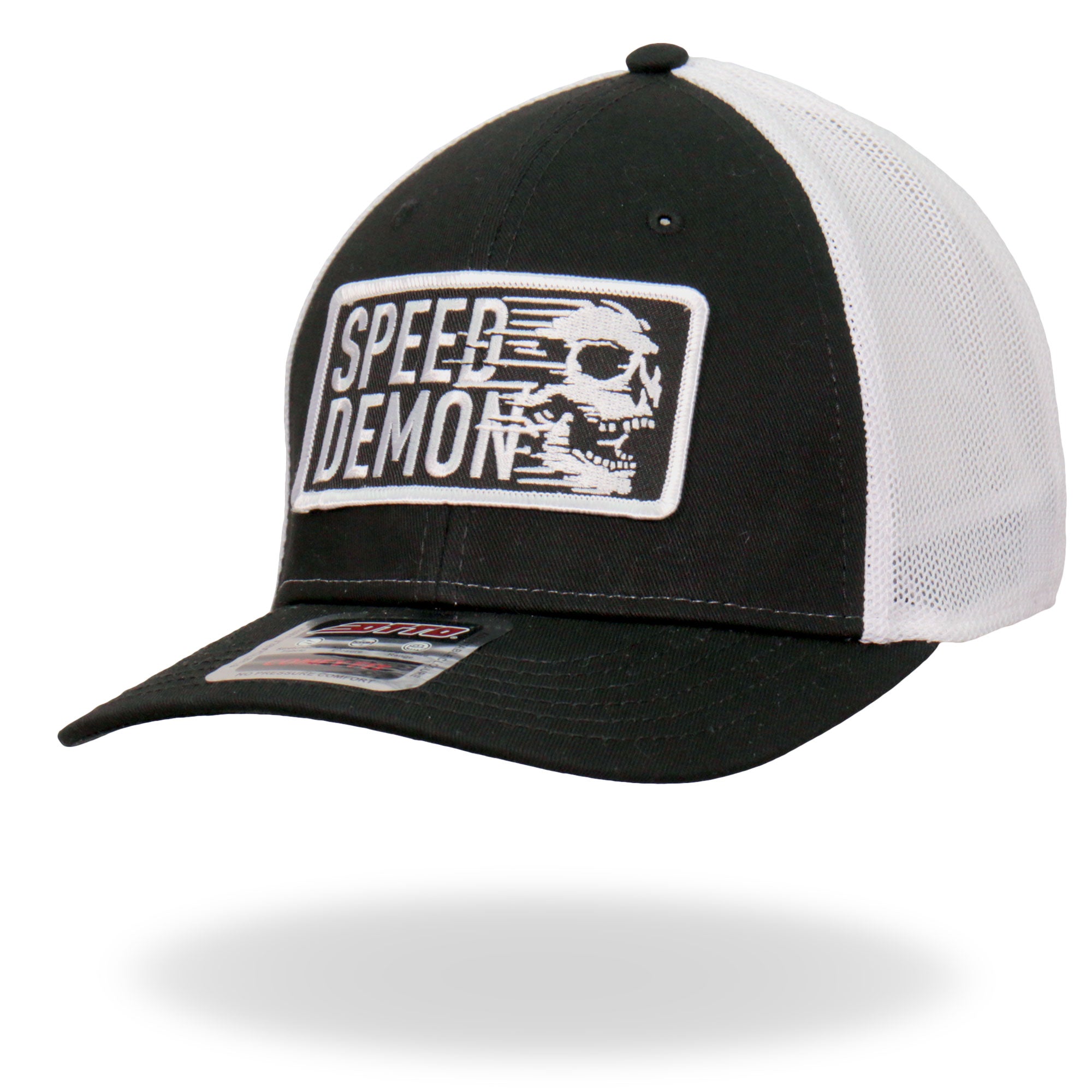 Hot Leathers Snap Back Hat. We use Otto Brand for our hat collection. This is the best snap back flat brim hat in the industry. Its a cotton/polyester blend helps the hat hold its shape for long time use. It is a mesh style back hat with a plastic adjustable tab and features a great Hot Leathers art patch.