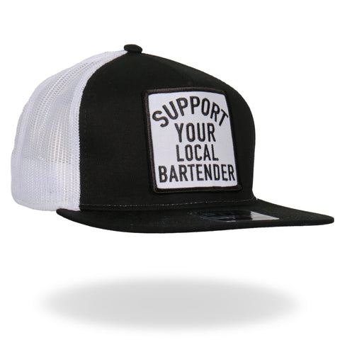 Hot Leathers Snap Back Hat. We use Otto Brand for our hat collection. This is the best snap back flat brim hat in the industry. Its a cotton/polyester blend helps the hat hold its shape for long time use. It is a mesh style back hat with a plastic adjustable tab and features a great Hot Leathers art patch.